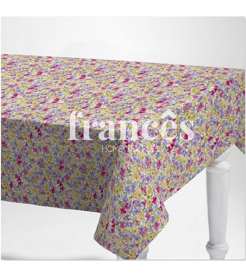 Table cover with printed PVC with a nonwoven base.